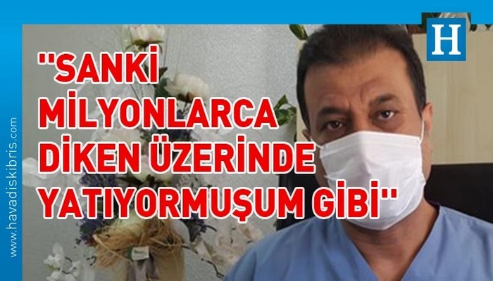 Eşi ve dört çocuğu ile birlikte corona virüse yakalanan doktor Zeki Kemeç yaşadıklarını, ”Sırt üstü yattığımda ise sanki milyonlarca dikenlerin üzerinde yatıyormuşum gibi canım acıyordu” şeklinde anlattı. Kemeç, soluk almakta zorlandığını, evin içinde iki adım dahi attığında nefesinin kesildiğini de belirtti.