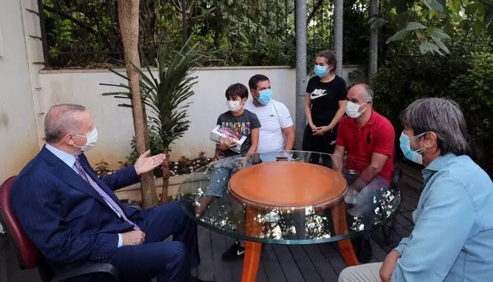 Cumhurbaşkanı Recep Tayyip Erdoğan, Çengelköy’de bir vatandaşın evine konuk oldu. Evin bahçesinde Yeşilyurt ailesi ile çay içerek sohbet eden Erdoğan, ailenin çocuğuna oyuncak hediye etti.