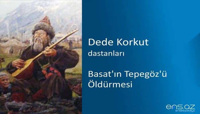 Alca kanını yer yüzüne dökmeyince Kardeşim Kayanın kanını almayınca Bırakmam dedi. Tepegöz de burada söylemiş, der: Kalkıp yerimden doğrulayım derdim Kudretli Oğuz beyleriyle ahdimi bozayım derdim Yeniden doğanını öldüreyim derdim Bir defa adam etine doyayım derdim Kudretli Oğuz beyleri üzerime toplanıp gelsin derdim Kaçıp Salahana Kayasına gireyim derdim Ağır mancınığı taşla atayım derdim İnip taş başıma düşerek öleyim derdim Ela gözden ayırdın yiğit beni Tatlı candan ayırsın Kadir seni dedi. Tepegöz bir daha söylemiş der: Ak sakallı yaşlıları çok ağlatmışım Ak sakalının bedduası tutmuş olacak gözüm seni Ak bürçekli ihtiyarcıkları çok ağlatmışım Gözünün yaşı tutmuş olacak gözüm seni Bıyıcığı kararmış yiğitcikleri çok yemişim Yiğitlikleri tutmuş olacak gözüm seni Elceğizi kınalı kızcağızları çok yemişim Bedduaları tutmuş olacak gözüm seni Öyle ki çekerim ben göz acısını Hiç bir yiğide vermesin kadir Tanrı göz acısını Gözüm gözüm ey gözüm yalnız gözüm dedi. Basat kızıp yerinden kalkıverdi. Erkek deve gibi Tepegöz'ü dizi üzerine çökertti. Tepegöz'ün kendi kılıcı ile boynunu vurdu. Deldi, yay kirişini taktı. Sürüye sürüye mağara kapısına geldi. Yünlü Koca ile Yapağılı Koca'yı Oğuz'a müjdeci gönderdi. Ak boz atlara binerek koşturdular. Kudretli Oğuz ellerine haber geldi. At ağızlı Aruz Koca evine dört nala geldi, anasına Basat'ın sevinç haberini verdi,müjde, oğlun Tepegöz'ü tepeledi dedi. Kudretli Oğuz beyleri yetiştiler. Salahana Kayasına geldiler. Tepegöz'ün başını ortaya getirdiler. Dedem Korkut gelip neşeli havalar çaldı, gazi erenlerin başına ne geldiğini söyleyi verdi Hem Basat'a dua verdi: Kara dağa seslendiğinde cevap versin Kanlı kanlı sulardan geçit versin dedi. Erlikle kardeşinin kanını aldın, kudretli Oğuz beylerini yükten kurtardın, kadir Allah yüzünü ak etsin Basat dedi. Ölüm vakti geldiğinde arı imandan ayırmasın. Günahınızı adı güzel Muhammed