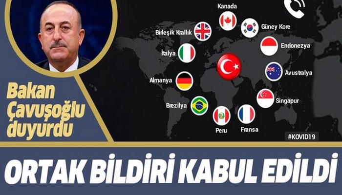 Dışişleri Bakanı Mevlüt Çavuşoğlu, Twitter hesabından yaptığı paylaşımda, "Covid-19'la mücadele Uluslararası Koordinasyon Grubu'nun 5'inci telekonferans görüşmesini yaptık. Covid-19 sonrası dönemde küresel ekonominin iyileştirilmesi için atılabilecek adımları değerlendirdik. Salgınla mücadele konusundaki Ortak Bildiri'yi kabul ettik" dedi.