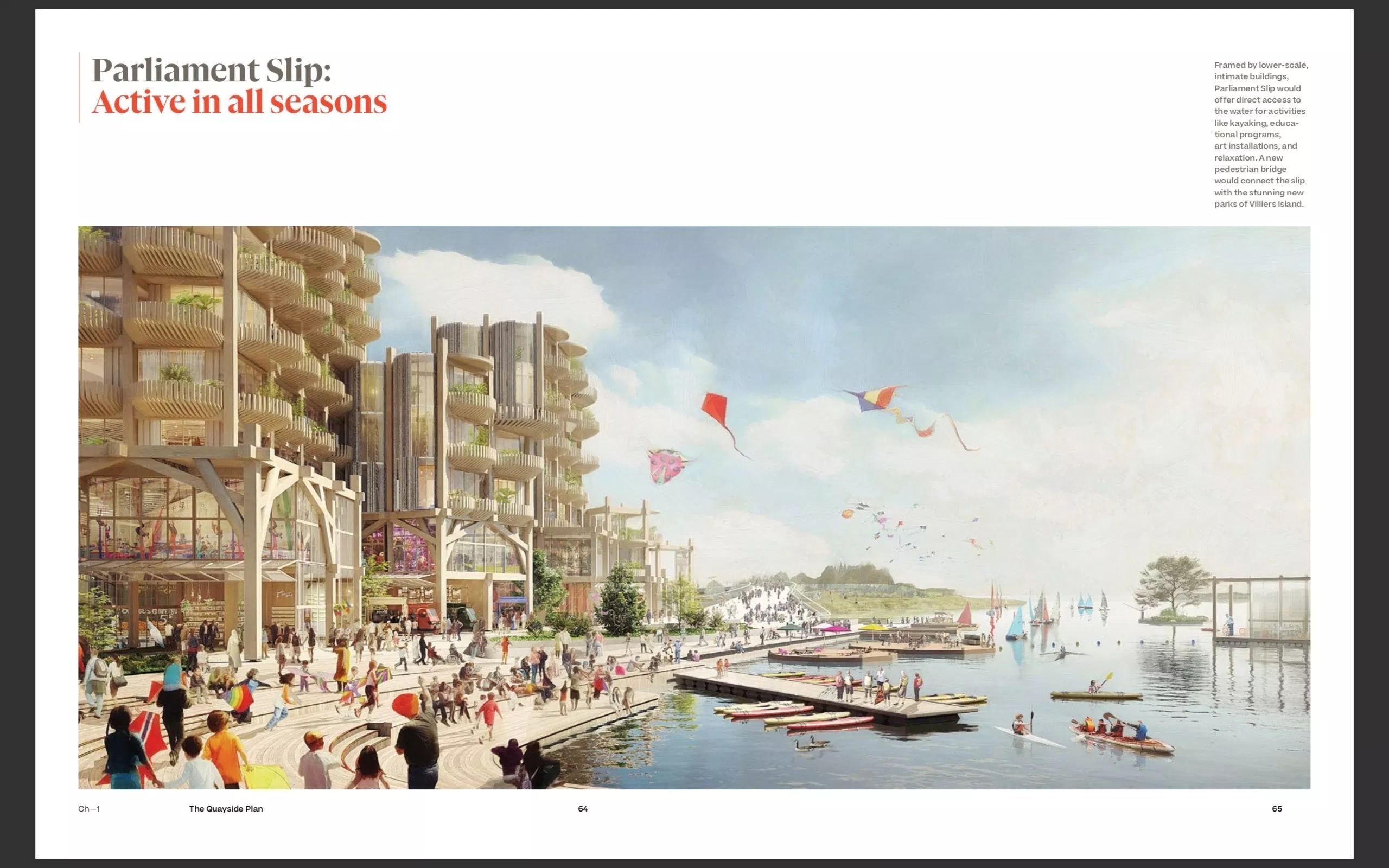 Quayside adı verilen bu proje, sürdürülebilir yapı malzemeleri ve tasarımları, elektrik için gelişmiş bir elektrik şebekesi, ısıtma ve soğutma için temiz bir termal ızgara, akıllı bir elektrik şebekesi, çok sayıda çevresel yenilik içeren düşük karbonlu, esnek bir mahalle imkanı sunacaktır.