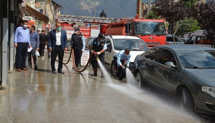 Hakkari Valisi ve Belediye Başkan Vekili İdris Akbıyık'ın talimatları üzerine korona virüsle mücadele çalışmaları kentin 15 değişik mahallesinde devam ediyor. Maskelerin takıldığı sosyal mesafeye dikkat edildiği Hakkari'de, korona virüs tedbirleri en üst seviyeye çıkartıldı. Vatandaşların sağlığını korumak adına tedbir amaçlı dezenfekte işlemlerine yoğunluk veren Hakkari Belediyesi, bugün de park alanları, cadde ve sokakları tazyikli suyla yıkadı.