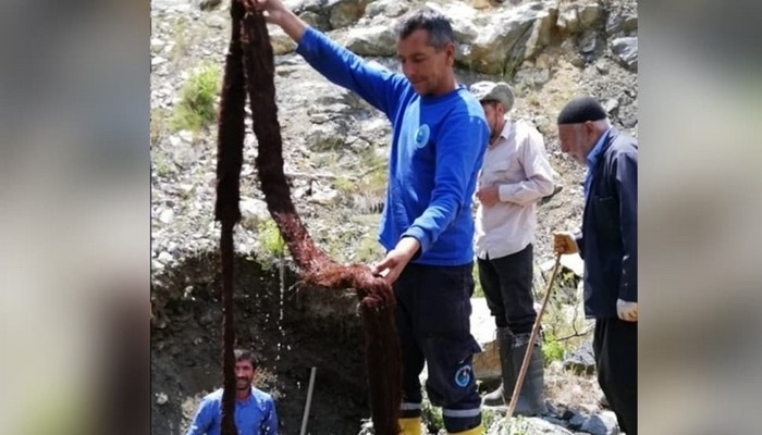 Kahramanmaraş'ın Ekinözü ilçesine bağlı Yeniköy Mahallesi'nde içme suyu temin edilen borunun içinden…