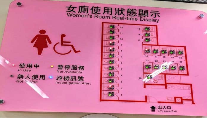 6. Taipei’deki bu lavabo göstergesi, hangi kabinlerin boş olduğunu gösteriyor.