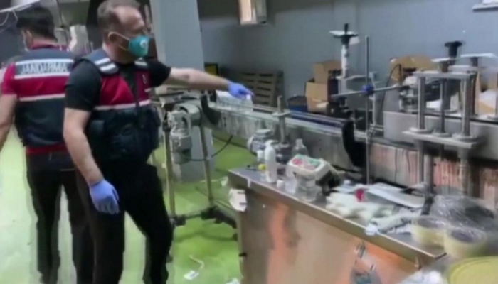 Yapılan aramada çeşitli ebatlarda ambalajlanarak hazırlanmış 45 bin litre sahte dezenfektan ile çok sayıda bandrol ele geçirilirken iş yeri sahibi A.A. gözaltına alındı.