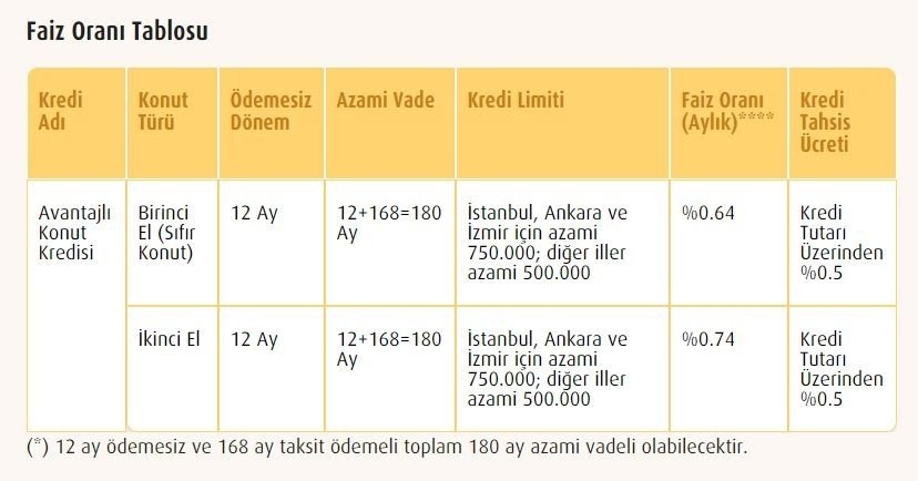 Hazine ve Maliye Bakanlığı tarafından açıklanan konut kredisi ve taşıt kredisi faiz indirimi ile birlikte emlak piyasası canlandı. Sıfır otomobillere olan talep de arttı. Halkbank, Vakıfbank ve Ziraat Bankası konut kredisi faiz oranları, başvuru şartları ve geri ödeme tablosu hakkında son dakika detayları ortaya çıktı. Halkbank'tan sıfır konut almak için 100 bin TL kredi kullanırsanız vadesini 180 ay yaparak aylık %0.64 oranıyla geri ödeme yapabilirsiniz. Taksit tutarı da 937 TL olacak. İkinci el dairelerde ise aylık faiz oranı %0.74 olarak dikkat çekiyor.