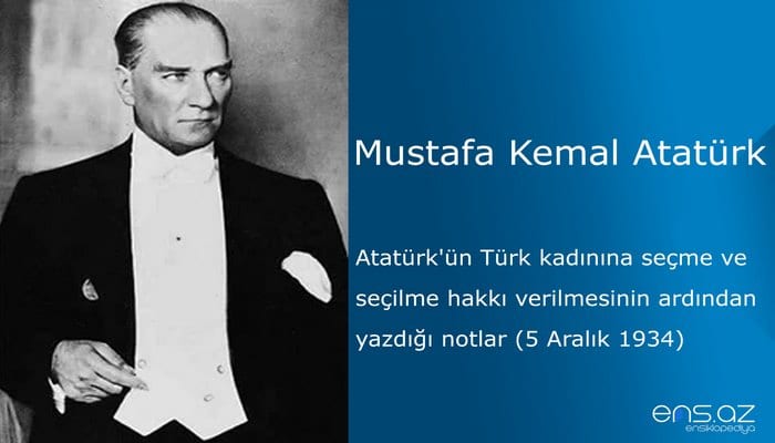 Mustafa Kemal Atatürk - Atatürk'ün Türk kadınına seçme ve seçilme hakkı verilmesinin ardından yazdığı…