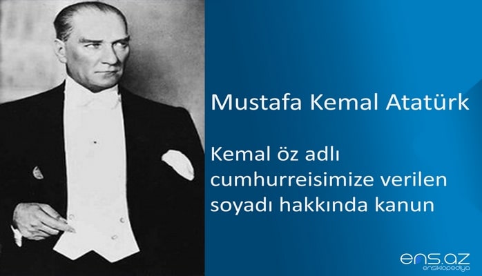 Mustafa Kemal Atatürk - Kemal öz adlı cumhurreisimize verilen soyadı hakkında kanun (24 Kasım 1934)