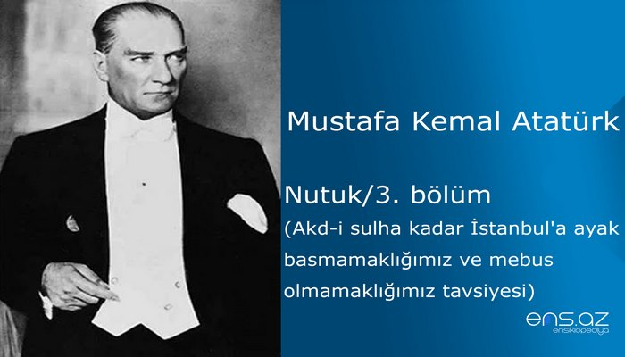 Mustafa Kemal Atatürk - Nutuk/3. bölüm/Akd-i sulha kadar İstanbul'a ayak basmamaklığımız ve mebus olmamaklığımız…