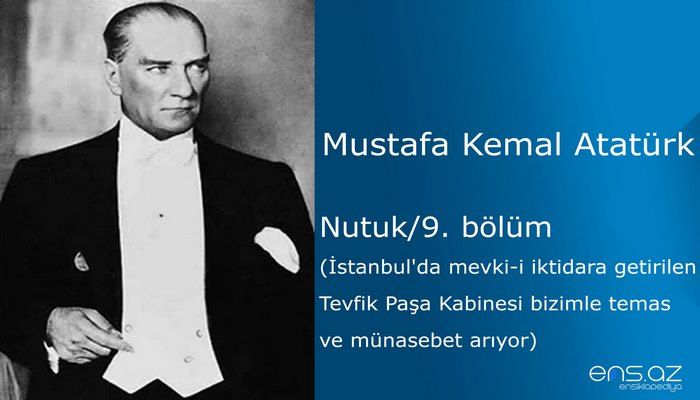 Mustafa Kemal Atatürk - Nutuk/9. bölüm/İstanbul'da mevki-i iktidara getirilen Tevfik Paşa Kabinesi bizimle…