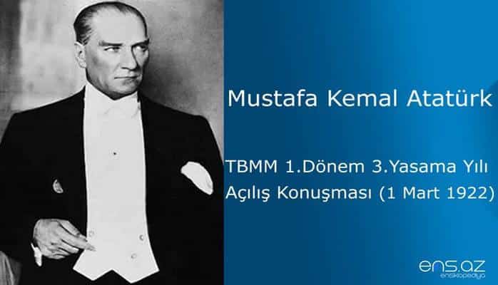 Mustafa Kemal Atatürk - TBMM 1.Dönem 3.Yasama Yılı Açılış Konuşması (1 Mart 1922)