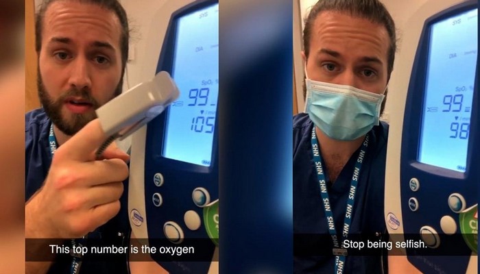Joshua Wolrich isimli bir cerrah, Instagram hesabından yaptığı paylaşımda maske takmanın oksijen seviyesini düşürmediğini ölçüm yaparak gösterdi ve uyardı: Bencil olmayı bırakın
