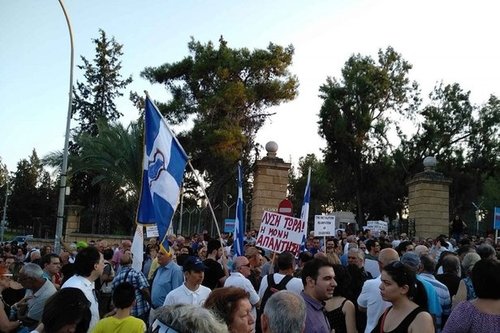 Güney Kıbrıs'ta, Kapalı Maraş'ın açılması için Rum Başkanlık Sarayı önünde yapılan mitingde, ırkçı ELAM…