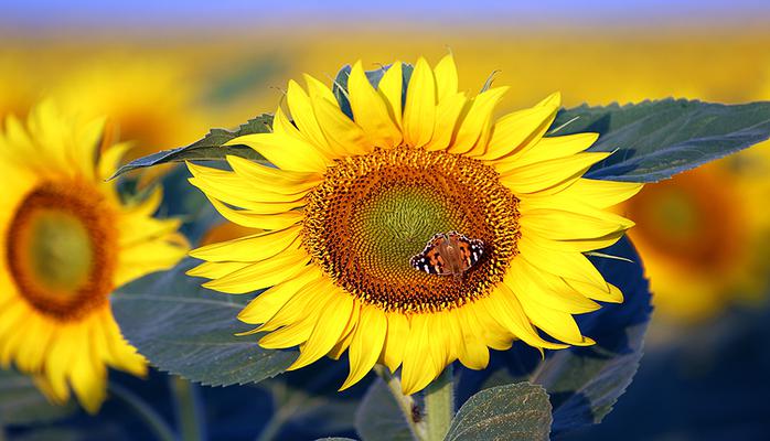 Güne adeta "merhaba" diyen ayçiçeği, polen toplayan arılar ve kelebeklerle güzelliğine güzellik katıyor.
