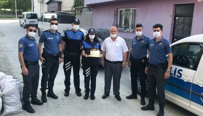 Pasta alıp ailenin evine giden polisler, Ömer Faruk'un doğum gününü kutladı.