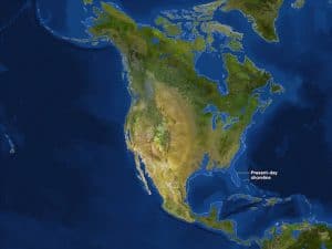 Amerika’nın güneydoğusu en çok etkilenen bölge oluyor. San Fransisco’nun meşhur tepeleri adaya dönüşüyor. Meksika’nın Yukatan yarımadası yarı yarıya düşüyor. Panama Kanalını su basıyor ve Güney ile Kuzey Amerika birbirinden neredeyse ayrılıyor. Küba’nın dörtte üçü yok oluyor.