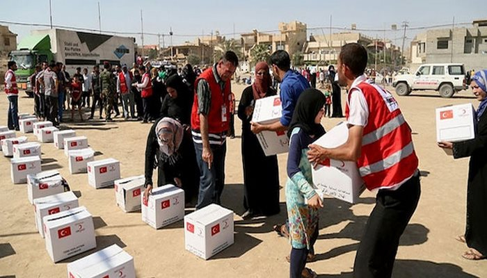 Türkiye pek çok dernek kanalıyla Yemen'de savaş nedeniyle yerlerinden edilen iç göçmenlere ve yoksul ailelere yardımda bulunuyor.