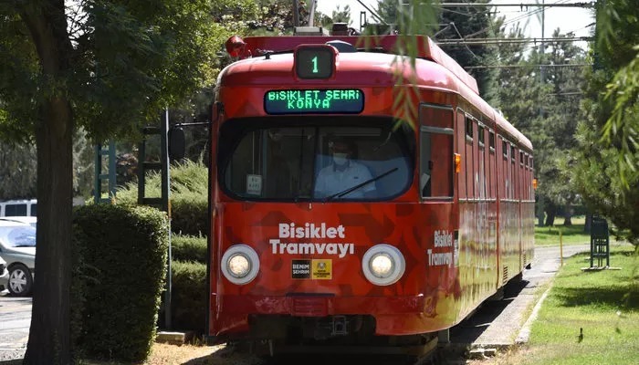 Konya’da bisiklet tramvayı ve bisiklet aparatlı otobüs dönemi başladı. 550 kilometreyle Türkiye’nin en uzun bisiklet yolu ağına sahip olan Konya’da Büyükşehir Belediyesi, yıllarca ulaşım yükünü çeken nostaljik tramvaylardan birini bisiklet tramvayına dönüştürerek, bisiklet kullanıcılarının hizmetine sundu. Konya Büyükşehir Belediyesi, ayrıca ilk etapta 50 otobüse bisiklet aparatları monte ettirdi. Bu otobüslerde de bisikletlerin arkadaki aparatlara asılmasıyla yolculuk yapılabiliyor.
