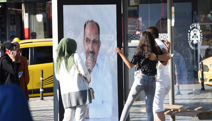 Konya Büyükşehir Belediye Başkanı Uğur İbrahim Altay, Türkiye'de yerel yönetimlerde ilk kez uygulanan 'durakta canlı kamera sistemi' ile vatandaşları maske ve sosyal mesafe kuralına uymaları konusunda uyarıyor. Aniden ekrana yansıyan Başkan Altay'ı gören vatandaşlar önce şaşkınlık yaşıyor, ardından karşılıklı görüşme yapıyor.