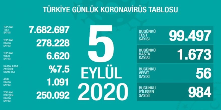Toplam vaka sayısı ise 1673 artarak 278 bin 228'e çıktı. 948 kişinin de virüsü yendiğini belirten Bakan Koca, toplam iyileşen hasta sayısının 250 bin 92 olduğunu bildirdi.Dün açıklanan tabloda 53 kişinin hayatını kaybettiği, 1612 kişiye de yeni tanı konulduğu belirtilmişti. 1021 kişi ise virüsü yenerek sağlığına kavuşmuştu.