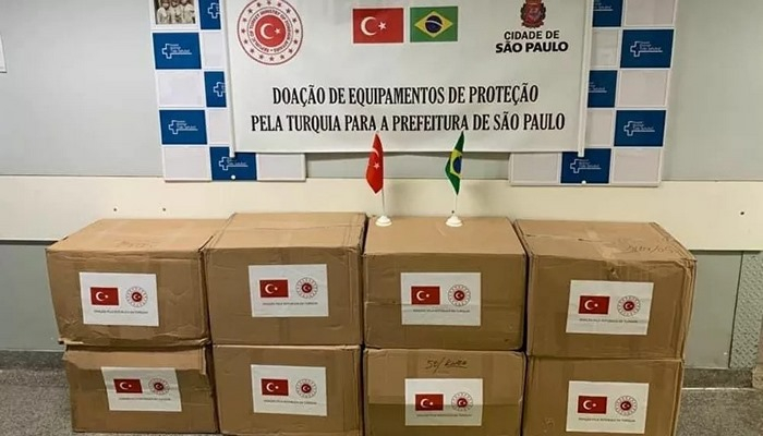 Türkiye'nin Sao Paulo Başkonsolosluğu'ndan yapılan yazılı açıklamaya göre, ülkenin ticaret merkezi ve en kalabalık şehri Sao Paulo'da bir hastaneye maske yardımı yapıldı.