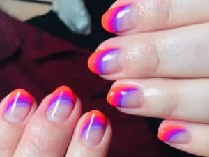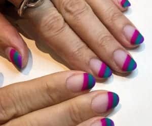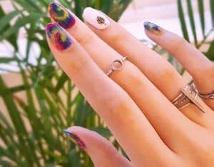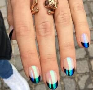 70’ler hissini veren 4 prizmatik renk tonu ile parlatılmış tırnaklarınızın üst köşesine minik bir gökkuşağı çizin.