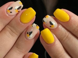 Sırasıyla bir tırnağı parlak sarıyla boyuyor, bir tırnağı sarıyla karışık desenlerle süslüyoruz.