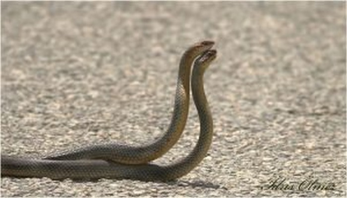 Alınan bilgiye göre, Ağın ilçesine bağlı Beyelması köyü girişindeki yolda birbirine kenetlenen yılanlar, uzun süre dans edercesine hareket etti. O sırada yoldan geçen bir sürücü cep telefonu ile yılanların dansını kaydetti. Yılanlar bir süre aynı hareketi yaparak yol kenarına geçince, sürücü aracıyla bölgeden uzaklaştı.